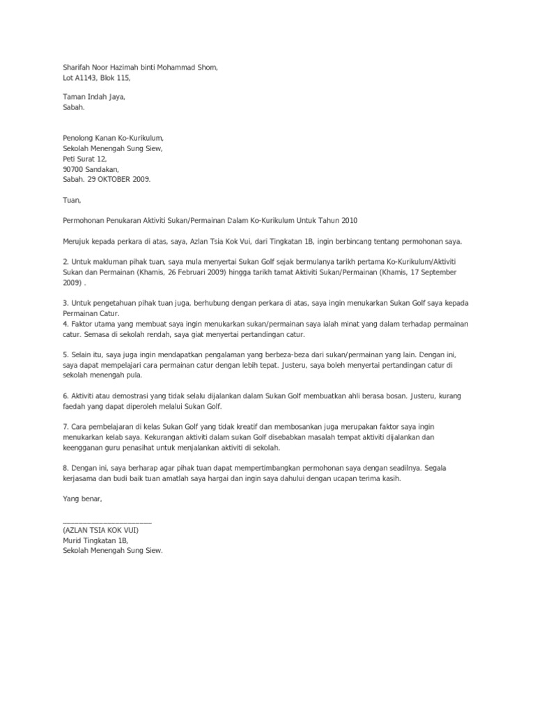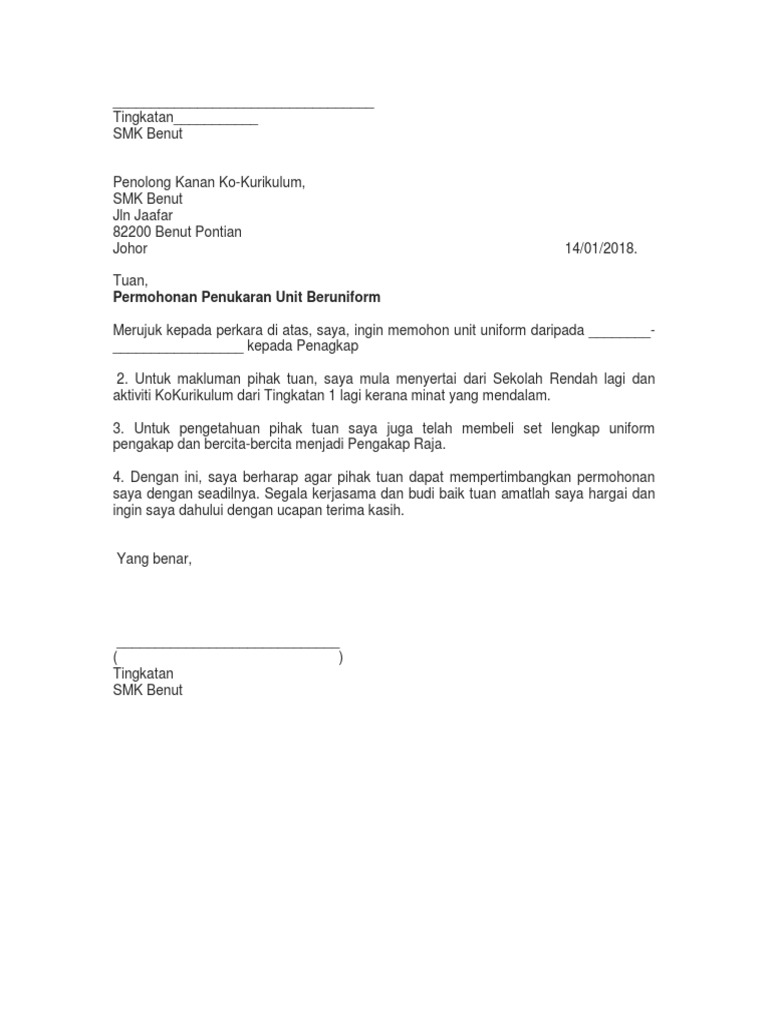 Surat Permohonan Tukar Unit Unifrom Pdf